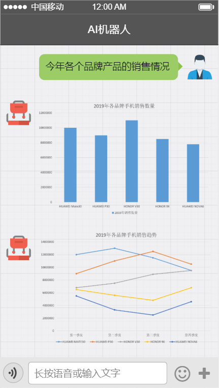 通过NLQ引擎从自然语言中提取关键的信息(如实体、参数、查询指标等),判断用户意图,转换为动态的不同维度的BI数据库SQL,最终将BI数据库返回的数据以合适的方式(文字、列表、报表等)展示给用户。