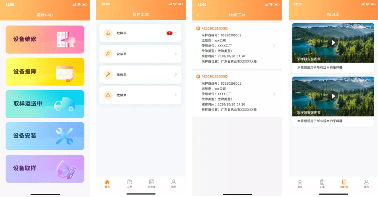 通过手机端APP实现现场运维作业,包括工单查询、设备维修、设备报障、设备安装、知识库等功能