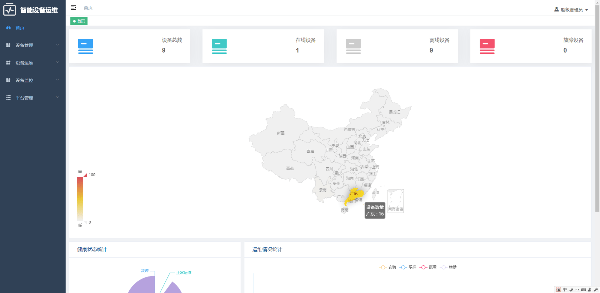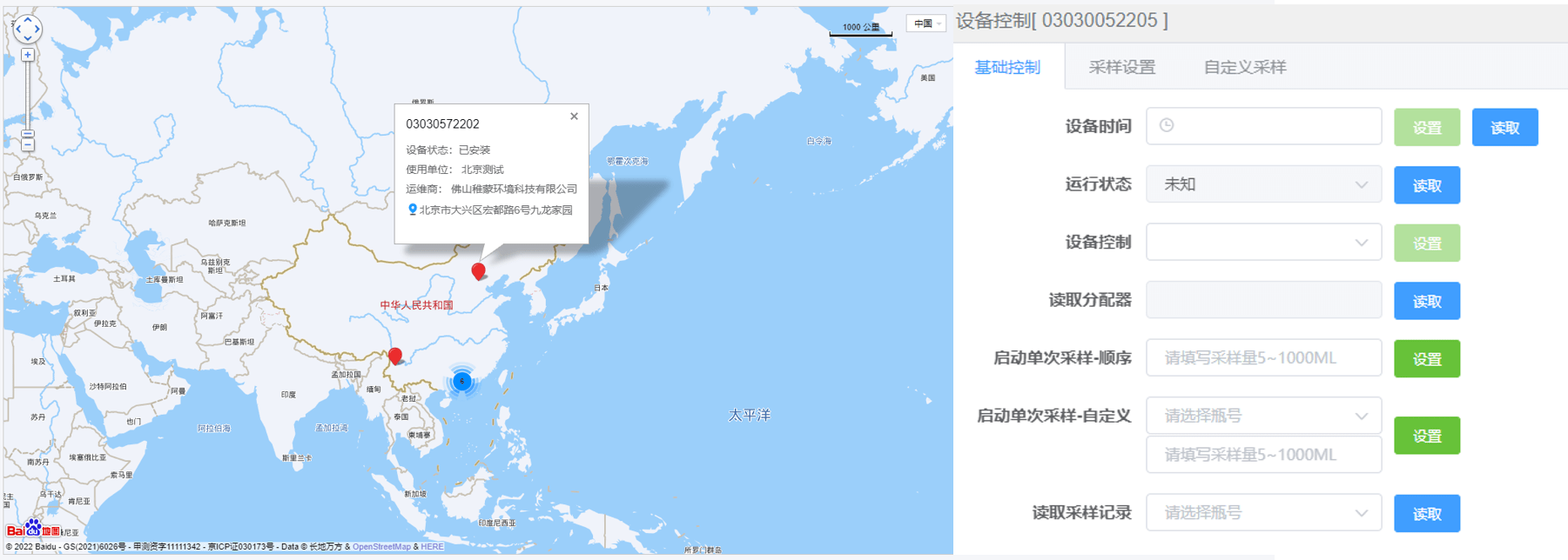 可通过地图实时监控设备的当前定位,同时支持远程下发指令控制设备