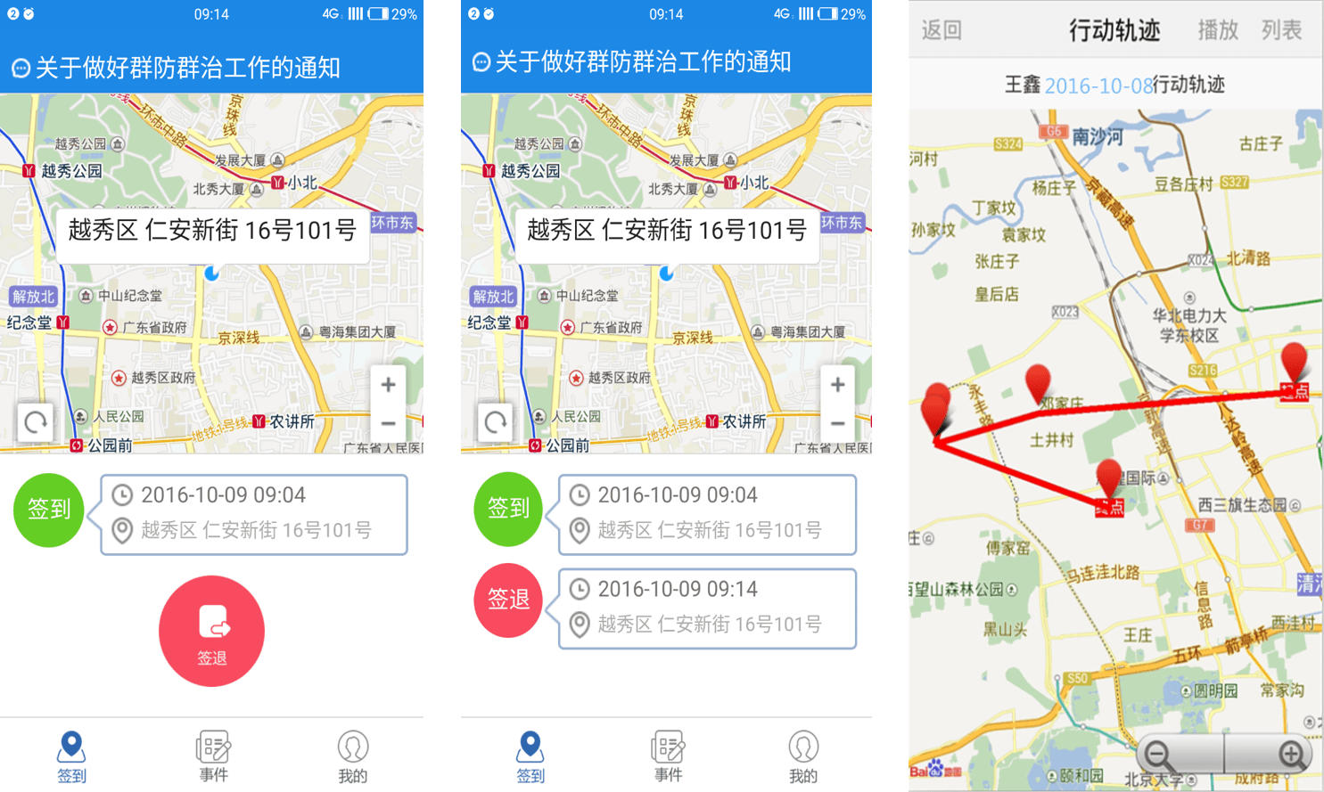 实时监控外勤人员当前上班状态以及所在位置,及时掌握外勤人员工作状态